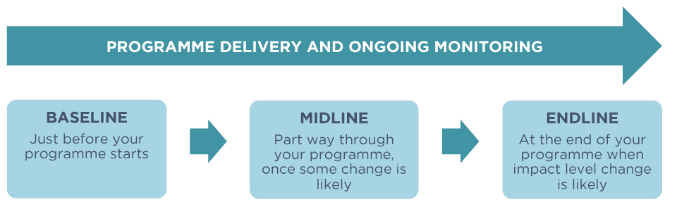 There is no point seeking to capture evidence of change before it is possible for that change to have taken place as that will lead to a waste of time and resources and can be demotivating for staff.